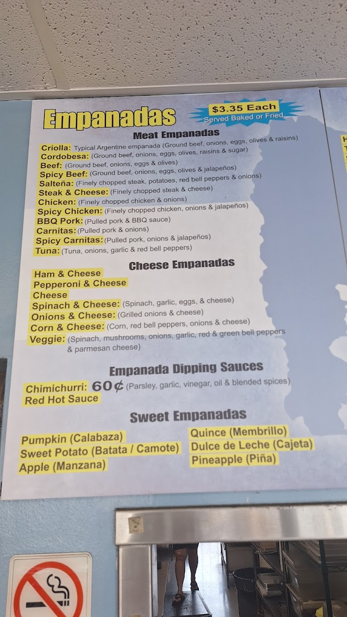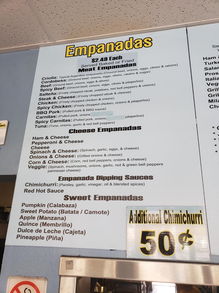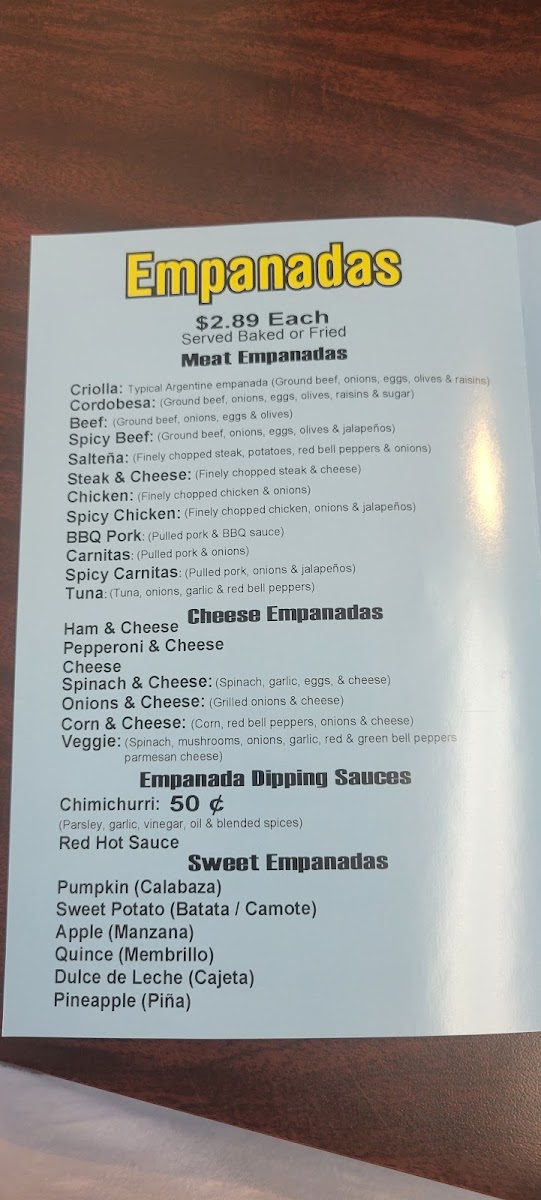 The options don't stop there! Cheese lovers will revel in the selection of cheese empanadas, with offerings like Spinach & Cheese, Corn & Cheese, and the savory Veggie option that combines spinach, mushrooms, and colorful bell peppers for a burst of flavor in every bite.