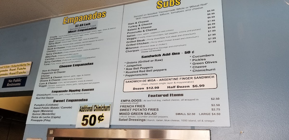 The atmosphere at Empanadas To Go is casual and welcoming, making it an ideal destination for a quick bite. While there’s no seating inside, the transparent kitchen provides a glimpse into the meticulous crafting of your order, and the friendly staff are always eager to share their recommendations. You have the option of enjoying your empanadas baked or fried; many regulars lean towards the fried option for that extra crispy texture. As one customer charmingly put it, "each bite is packed with flavor!"